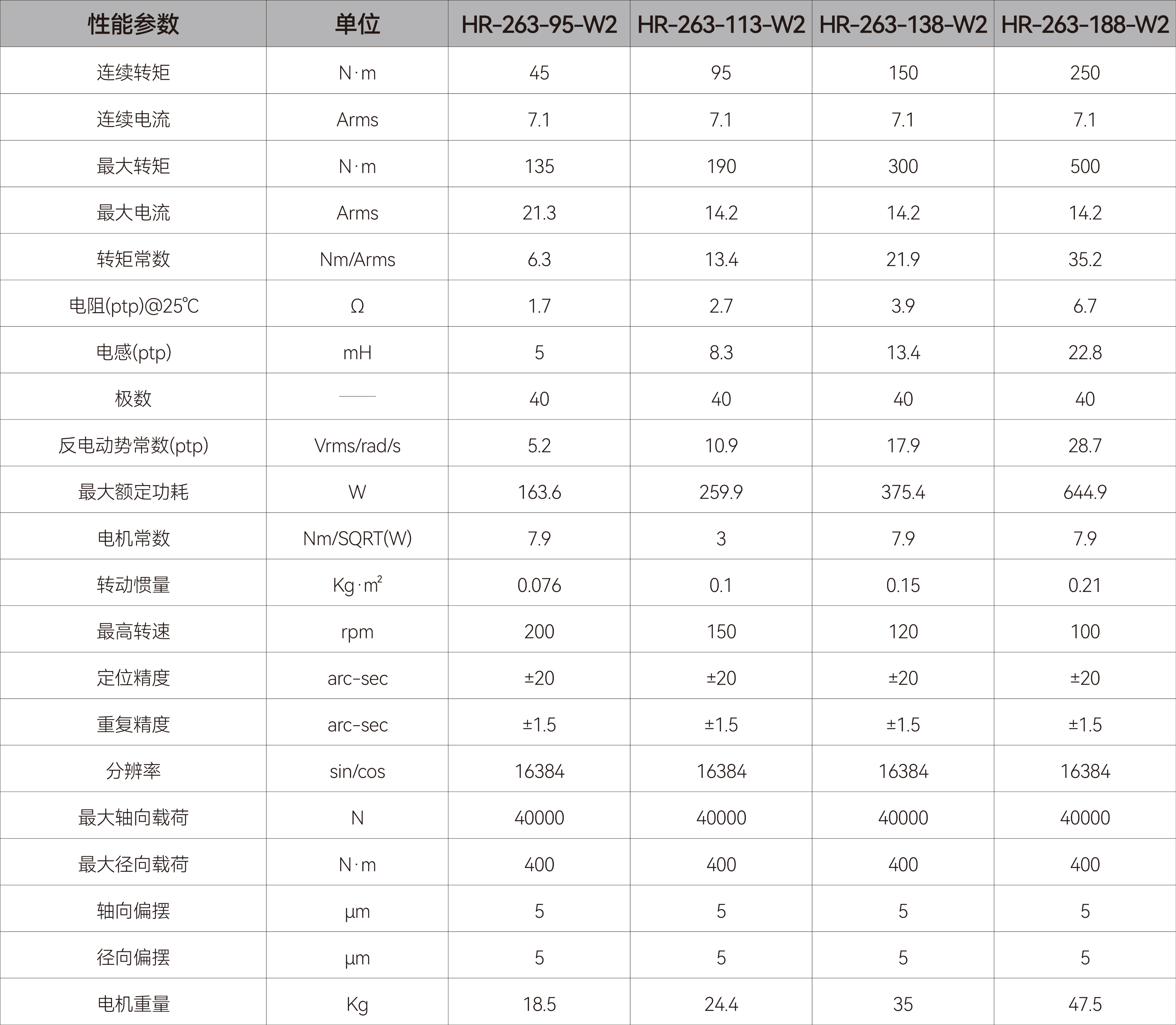 结构简单,负载可以和电机直接相连,无任何中间传动部件 大中空,大中心孔允许线缆、轴、激光等穿过 低温升,缩短了冷却时间,并缩短客户生产周期 高精度、高刚性,电机内置光学编码器使系统具有更好的定位精度,同时电机搭载高刚性交叉滚柱轴承,使电机具有高承载能力 低轴向、低径向跳动