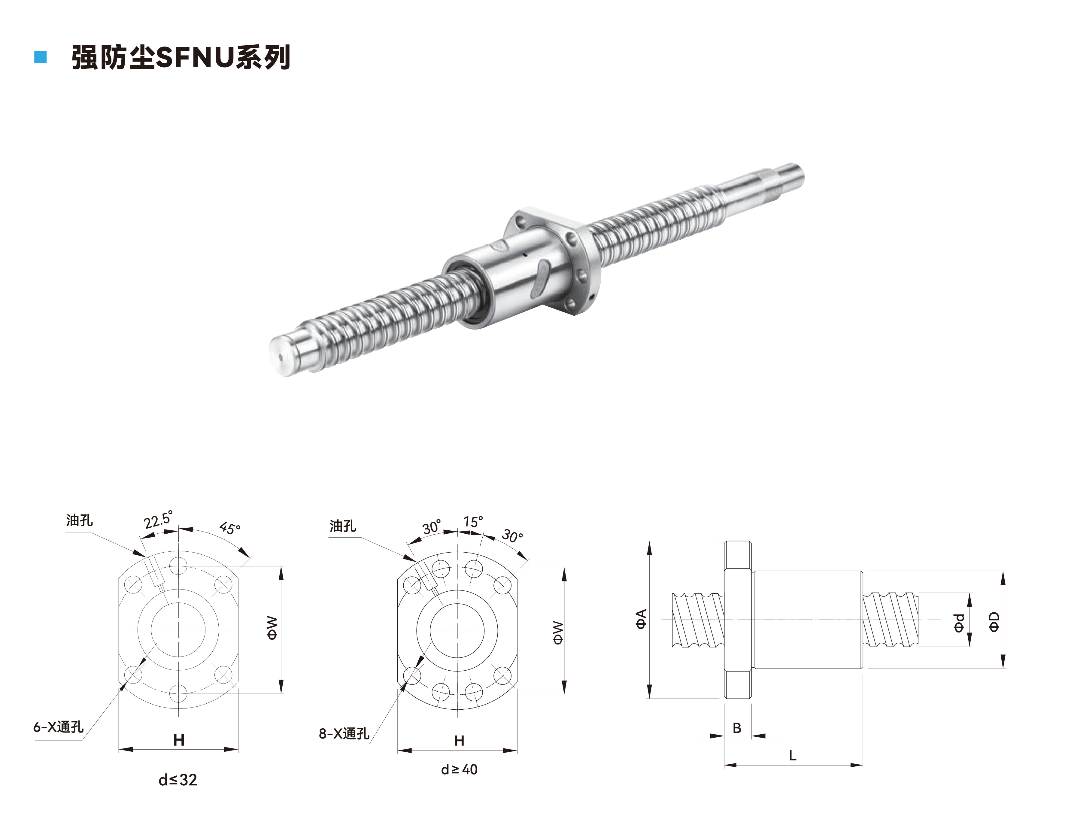 强防尘型滚珠丝杠是一种高防尘设计的传动元件,采用内循环结构,可有效阻挡粉尘和异物进入,延长使用寿命。同时具备高刚性、无间隙传动特性,适用于自动化机械、一般工具机等对空间和防尘要求较高的场合。