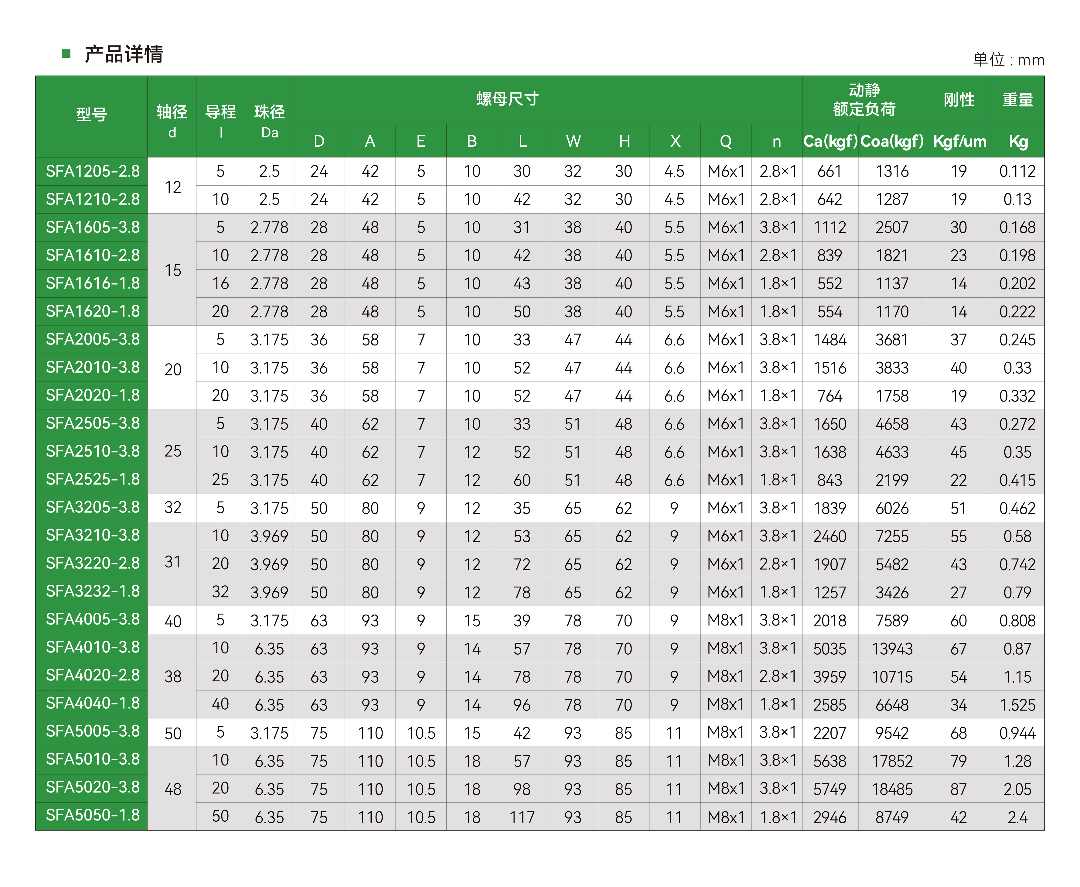 SFA系列 强防尘低噪音型滚珠丝杠