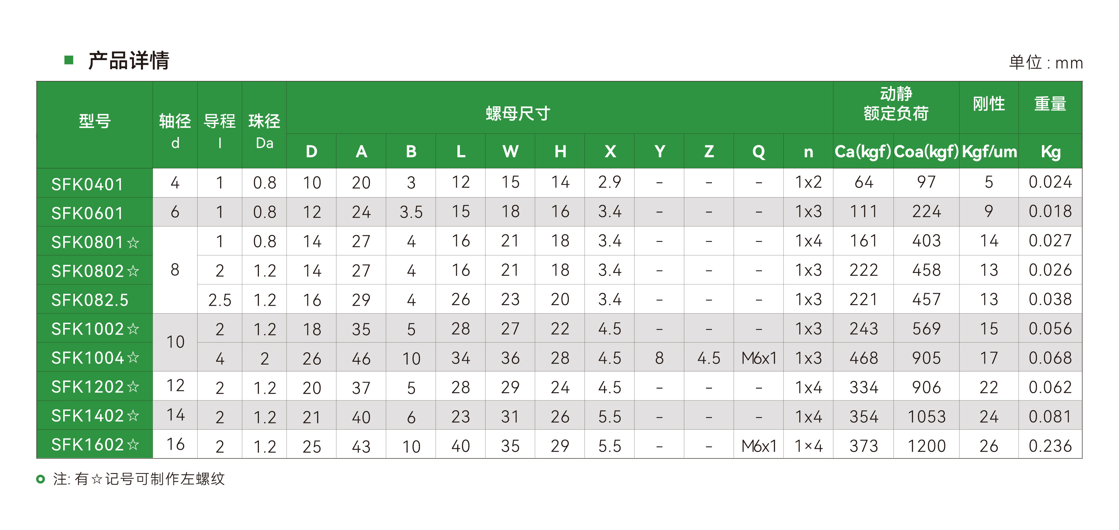 SFK系列 微型滚珠丝杠