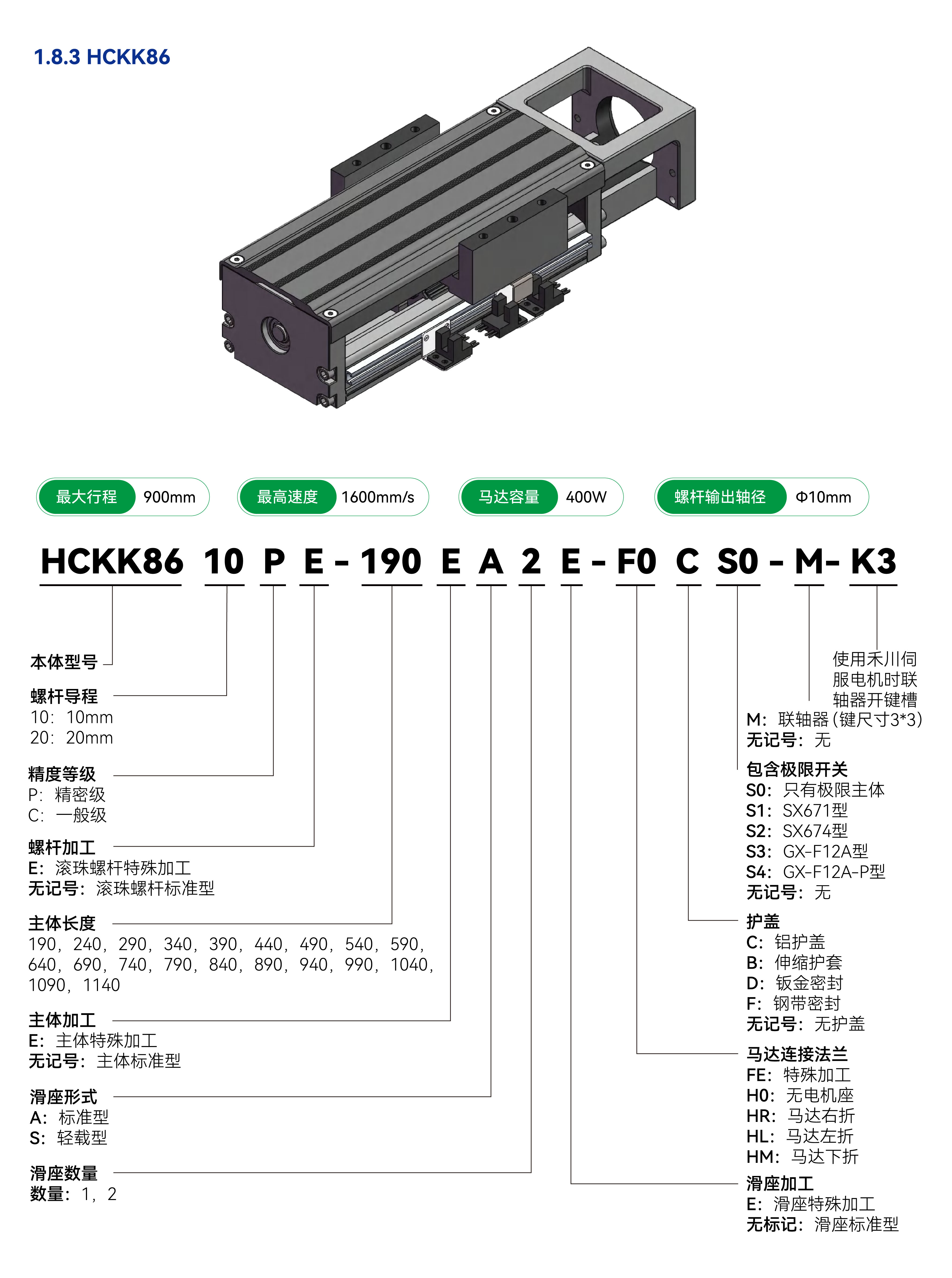 HCKK系列直线模组是一款高集成化精密直线传动装置,融合高刚性直线导轨、精密滚珠丝杠及驱动系统于一体,采用模块化设计实现即装即用。广泛适用于自动化生产线、精密检测设备、电子组装等需要高速高精度定位的工业场景。