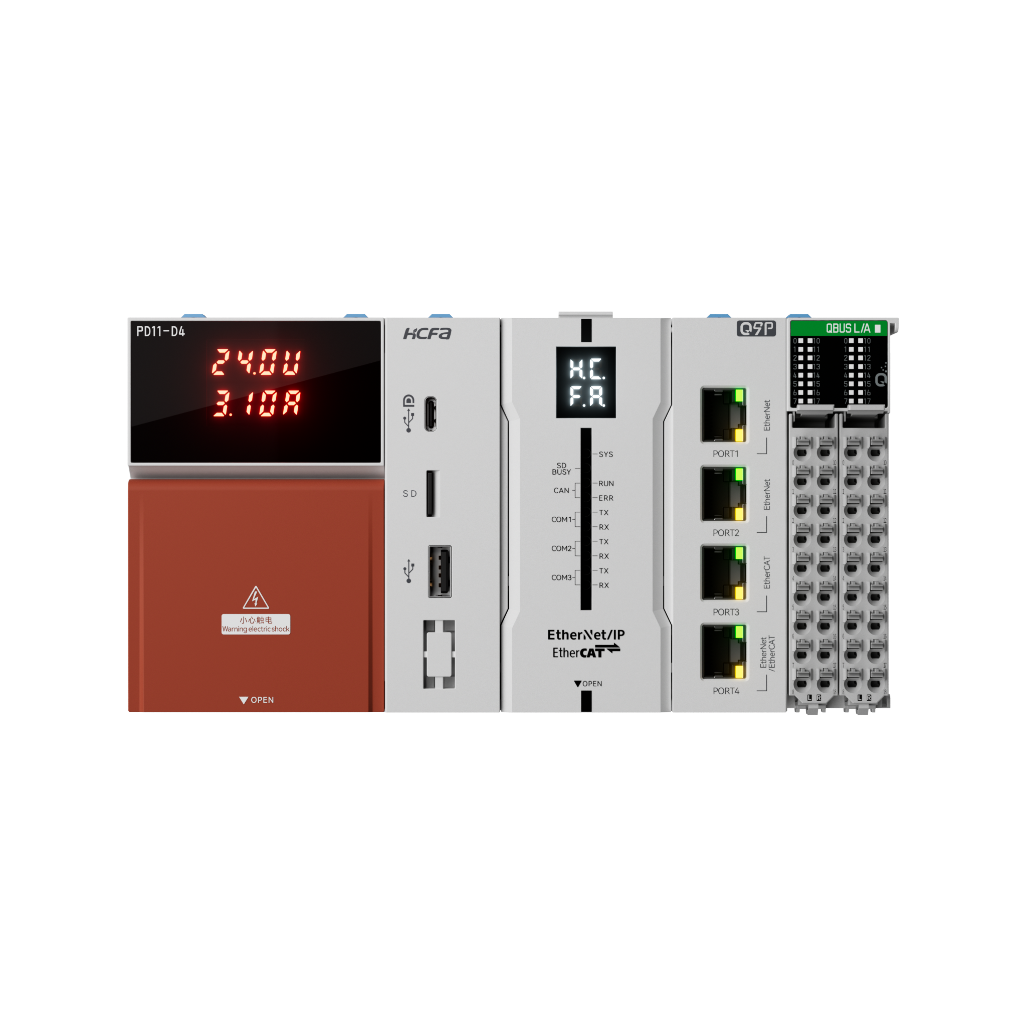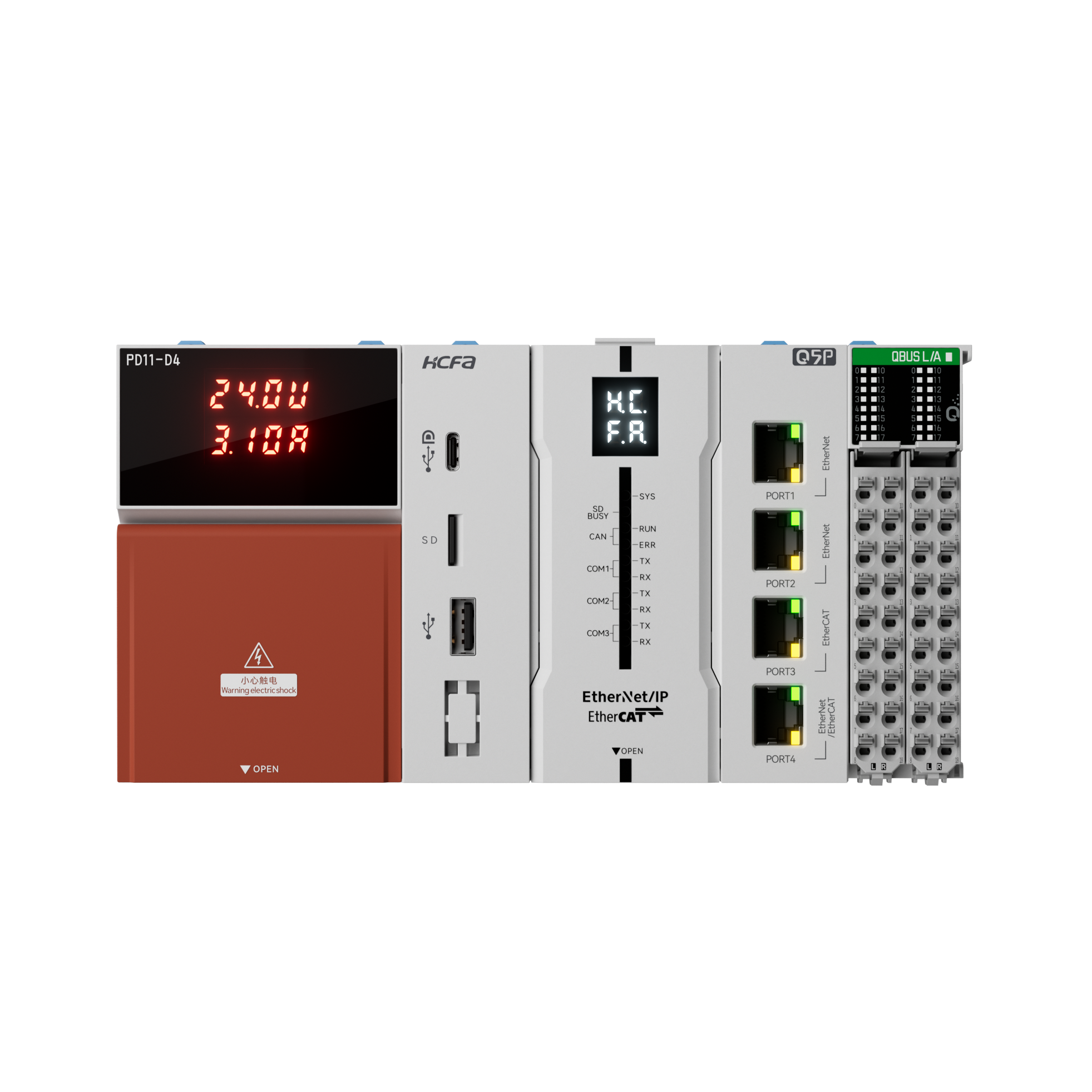 Q Plus系列控制产品规格更加丰富,从简单应用到复杂场景轻松应对,Q0P、Q1P和Q3P采用ARM平台高性能处理器,足以应对传统中小型设备的应用,Q5P、Q7P、Q9P采用Intel高性能四核处理器以应对响应性高且复杂的应用场景。全系列集成 EtherCAT、EtherNet/IP、OPC UA、CANopen、Modbus通信协议,可轻松实现与MES、ERP、车间设备之间互联互通。