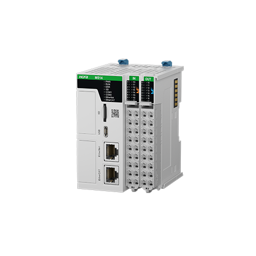 M500系列为总线通用型控制器,相比非500系列具备更多的程序和变量空间容量。本体自带一路网口+2路RS485,可扩展16个扩展模块和2路BD卡。M500可实现4轴的高速脉冲输出+8~64轴EtherCAT总线和2通道的高速脉冲输入。支持单轴位置/速度、电子齿轮/电子凸轮/轴组/插补(直线、圆弧、螺旋)、CNC等功能。