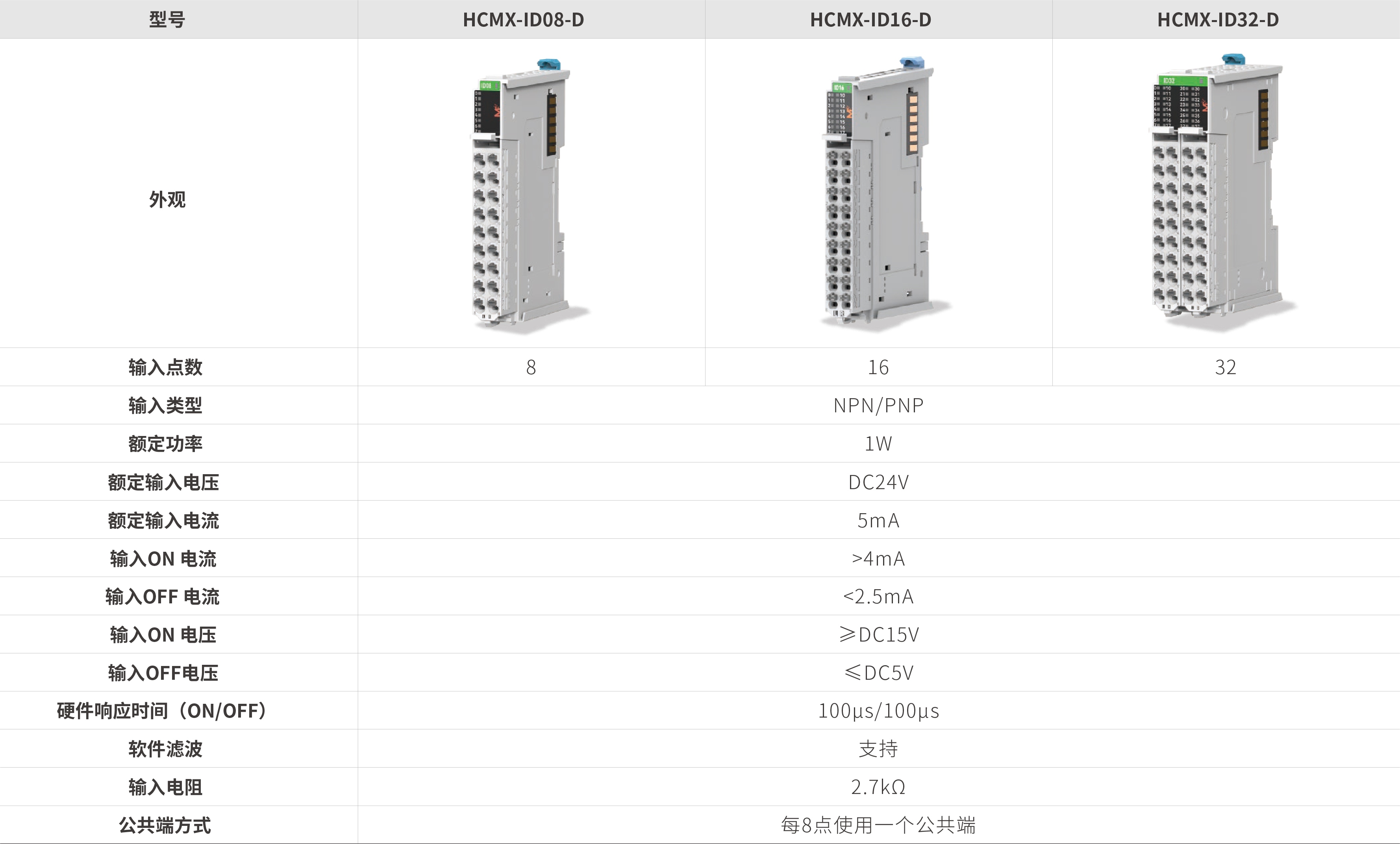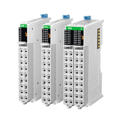 3款数字量输入模块,覆盖8点、16点和32点的数字量输入,最小机身仅13mm,端子采用可拆卸和PUSH IN (免工具)接线端子,兼容NPN和PNP的接线方式。