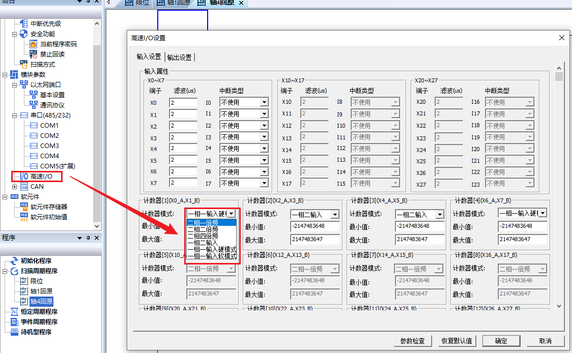 R系列高速计数器有多种模式可以选择: