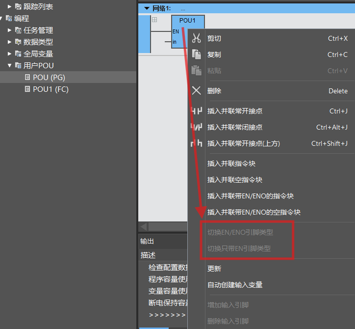 FC(函数)类型在梯形图中暂无法切换成不带EN/ENO的指令块(M系列软件版本2.4.0.1705);