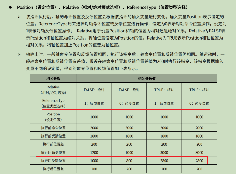 (1)M系列模态轴使用绝对定位时,position不能设置为负数,方向由Deceleration引脚决定;