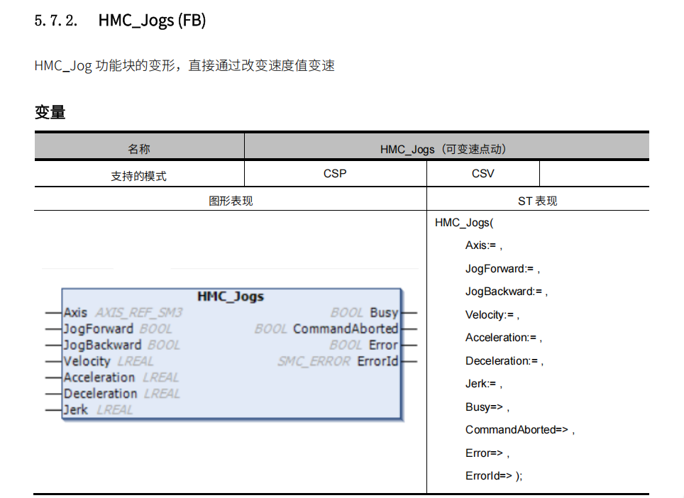 ATC库中的HMC_JOGS功能块是运行中变速功能块,只有速度引脚可以在运行中进行动态修改,加减速和加加速度引脚在运行中不可动态修改,修改后需要重新触发JOG引脚才会生效。