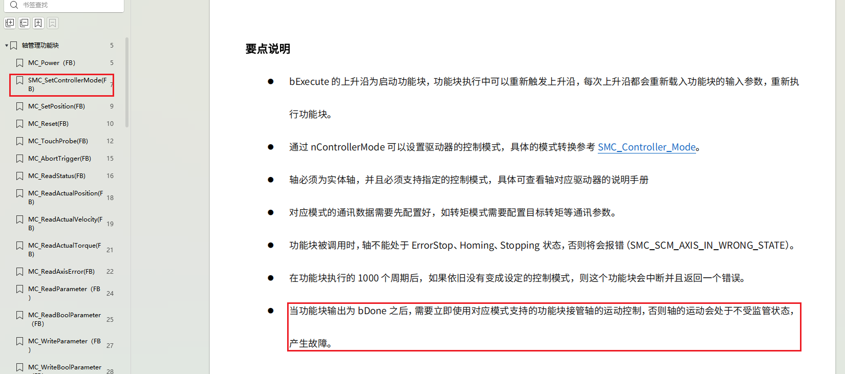 这个功能不同版本softmotion体现不一样,目前所知使用14版IDE对应4.4.0.2版本的softmotion使用SMC_SetControllerMode是可以任意切换的,其他高版本的softmotion使用SMC_SetControllerMode可能会引起以上两种轴报错情况。引起的报错的原因如下: