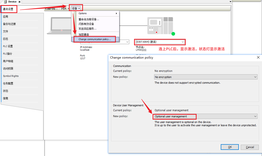 如不对则说明已经修改过默认账户或者密码导致,需要使用正确的用户和密码登录,若PLC无法连上则无法进行下面操作