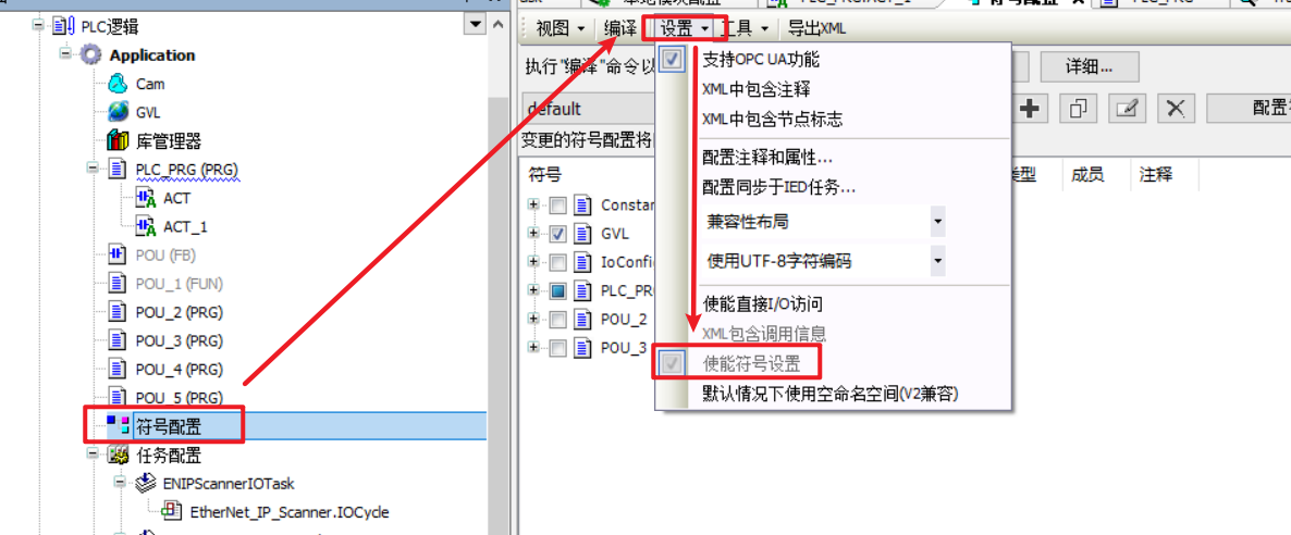(3)HCP WORKS3软件中默认没有配置符号权限的按钮,可在符号配置==设置==勾选使能符号设置;