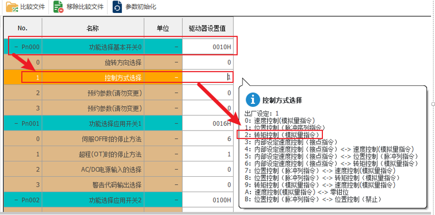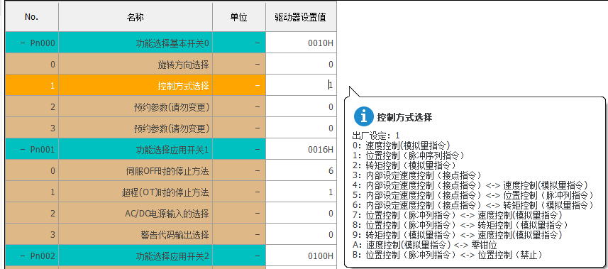 控制模式设置:Pn000.2=0(速度模式:模拟量指令)