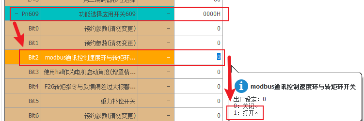 通讯控制开关:Pn609=H0004(bit0-bit15,要求bit2=1),