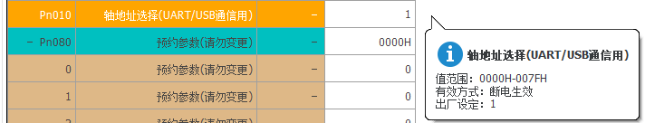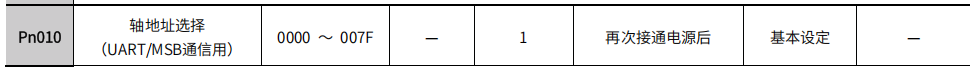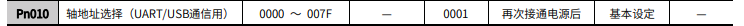 通讯站号设置:Pn010=1(站号默认为1,可根据所需自行设置,修改后,对应控制指令的站号也需要修改);