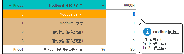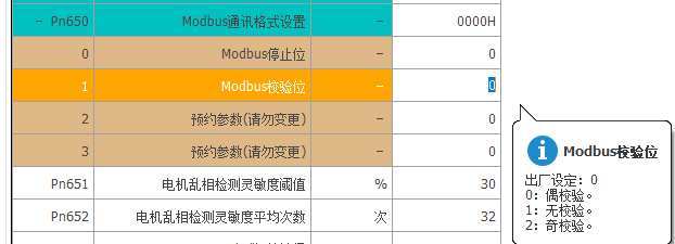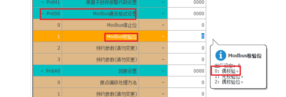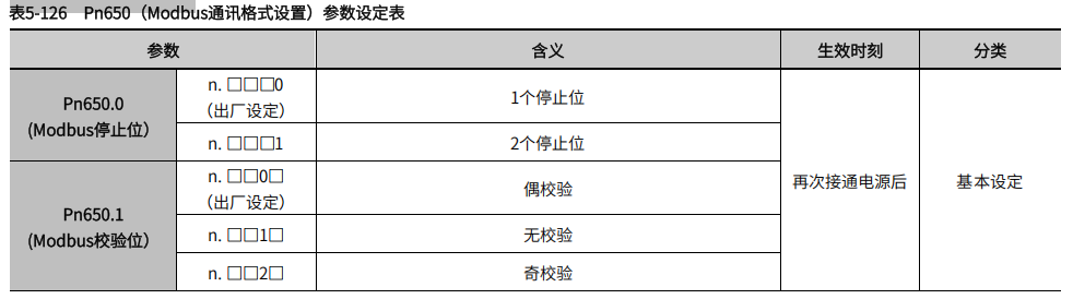 通讯校验设置:Pn650.1=0(可根据所需自行修改,修改后,主站侧校验位也需对应设置);