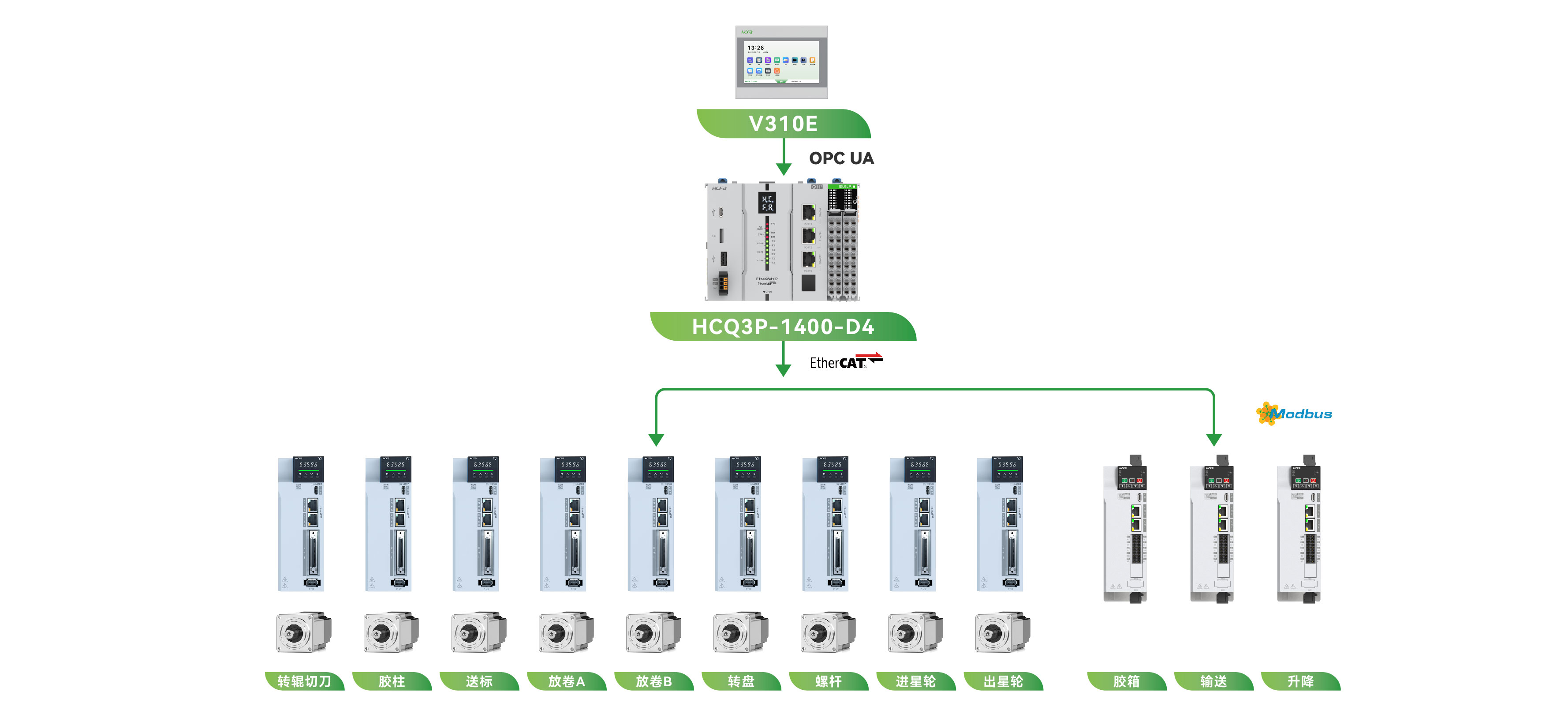 切刀、转鼓伺服驱动, 转盘变频驱动